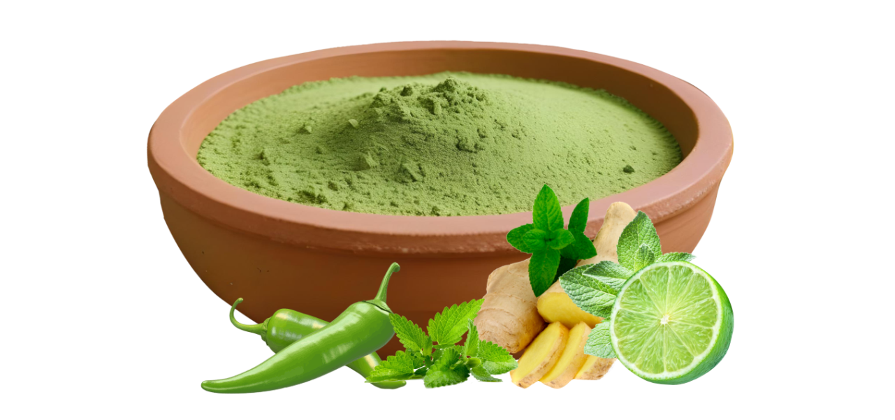 સંચળ અને ફુદિના બે નોજ સ્વાદ મુખ્ય લાગે છે. લીલી ચટણીનો મુખ્ય સ્વાદ , લીલા મરચાંની તીખાશ ગાયબ છે.